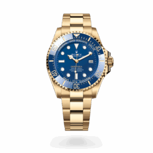The Rolex Deepsea in Oystersteel comes with an intense black dial or D-blue dial. It features a unidirectional rotatable bezel with graduated Cerachrom insert in black ceramic. In 2024, the brand unveiled an 18 ct yellow gold version with a blue dial and a Cerachrom bezel insert in blue ceramic.