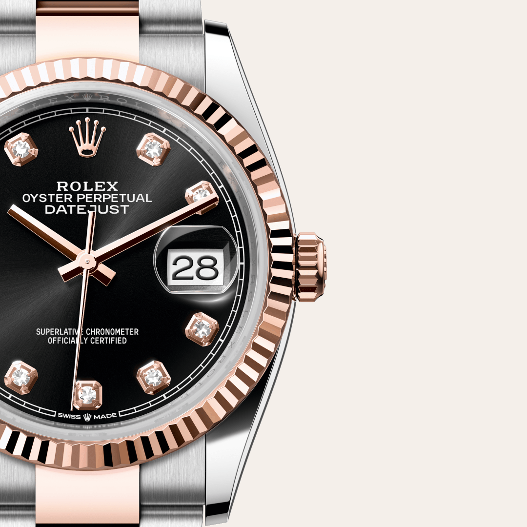 The Rolex fluted bezel is a mark of distinction. Originally, the fluting of the Oyster bezel had a functional purpose: it served to screw the bezel onto the case helping to ensure the waterproofness of the watch. It was therefore identical to the fluting on the case back, which was also screwed onto the case for waterproofness, using specific Rolex tools. Over time, the fluting became an aesthetic element, a genuine Rolex signature feature. Today the fluted bezel is a mark of distinction, in gold on this Datejust 36.