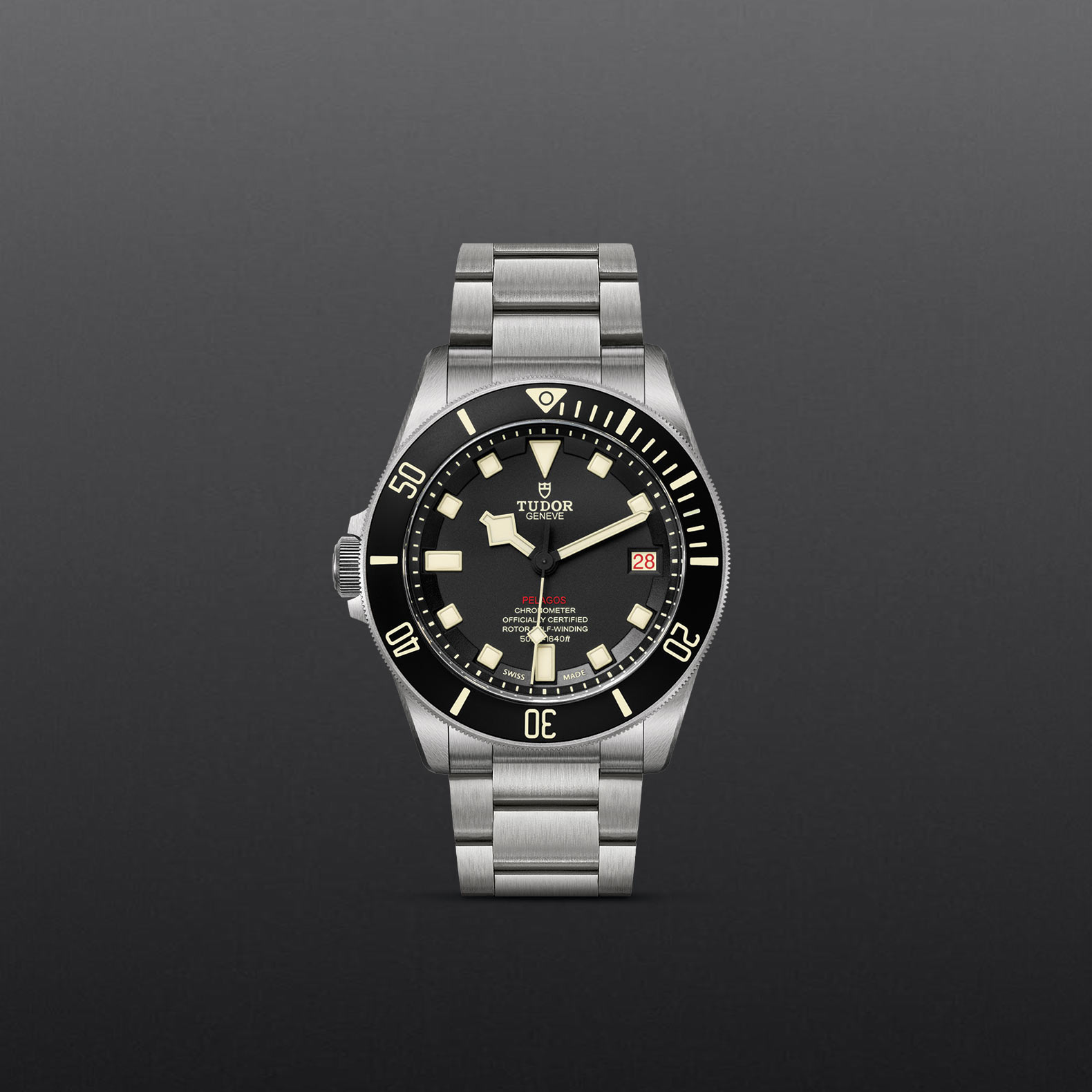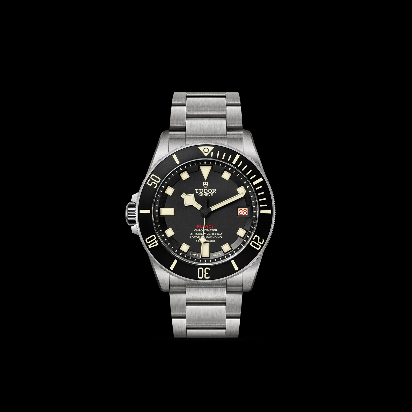 Titanium screw-down winding crown at 9 o’clock with the TUDOR logo in relief Automatic helium escape valve at 3 o’clock