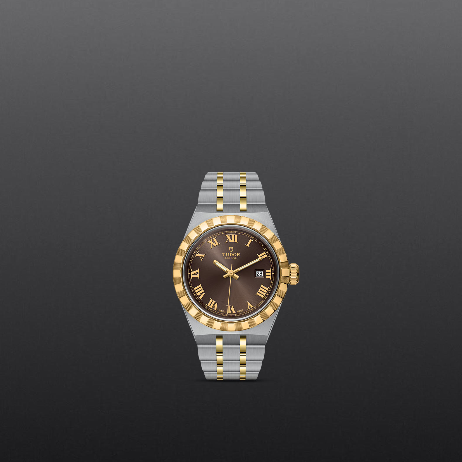 Yellow gold screw-down winding crown with the TUDOR logo