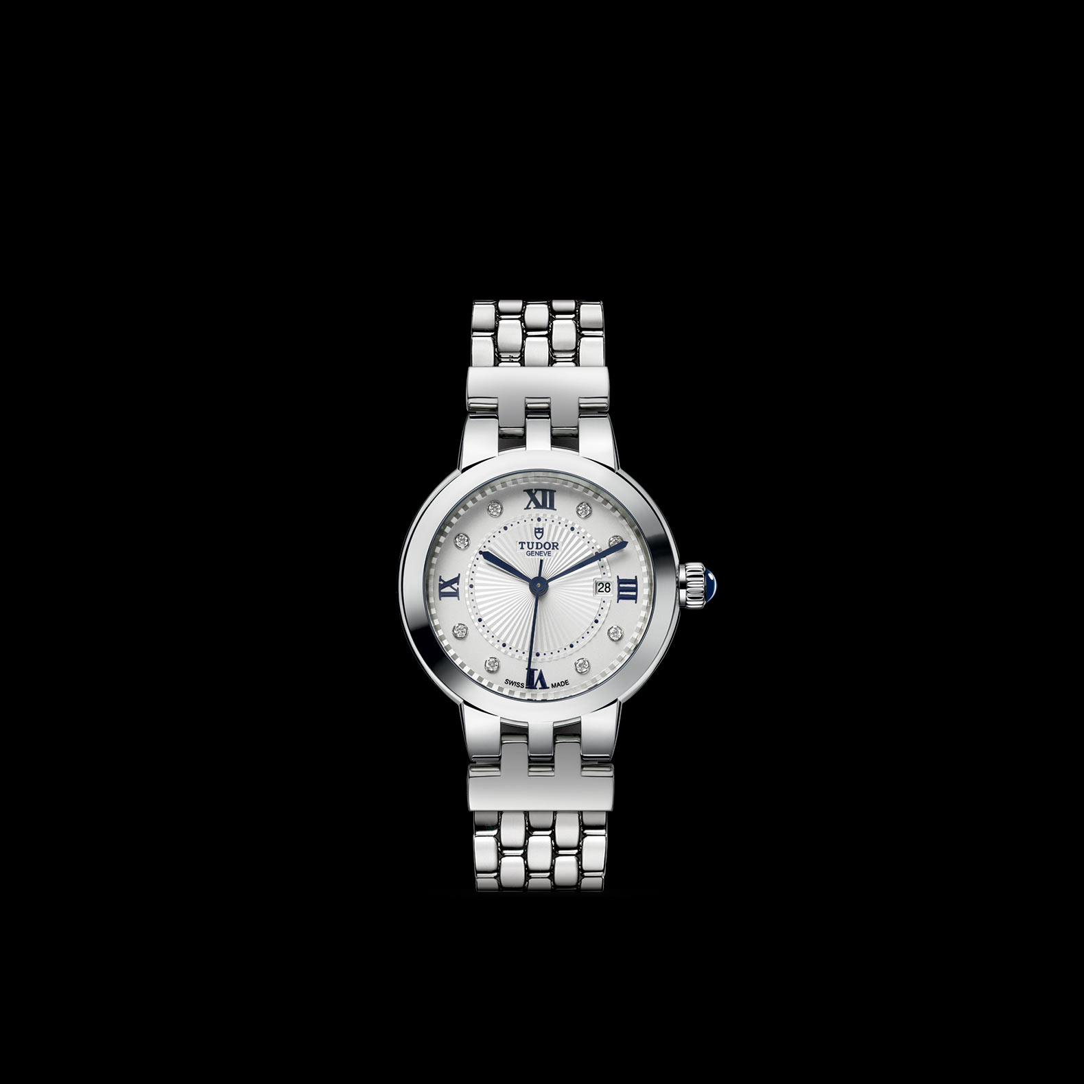 Steel screw-down winding crown, with transparent blue spinel cabochon