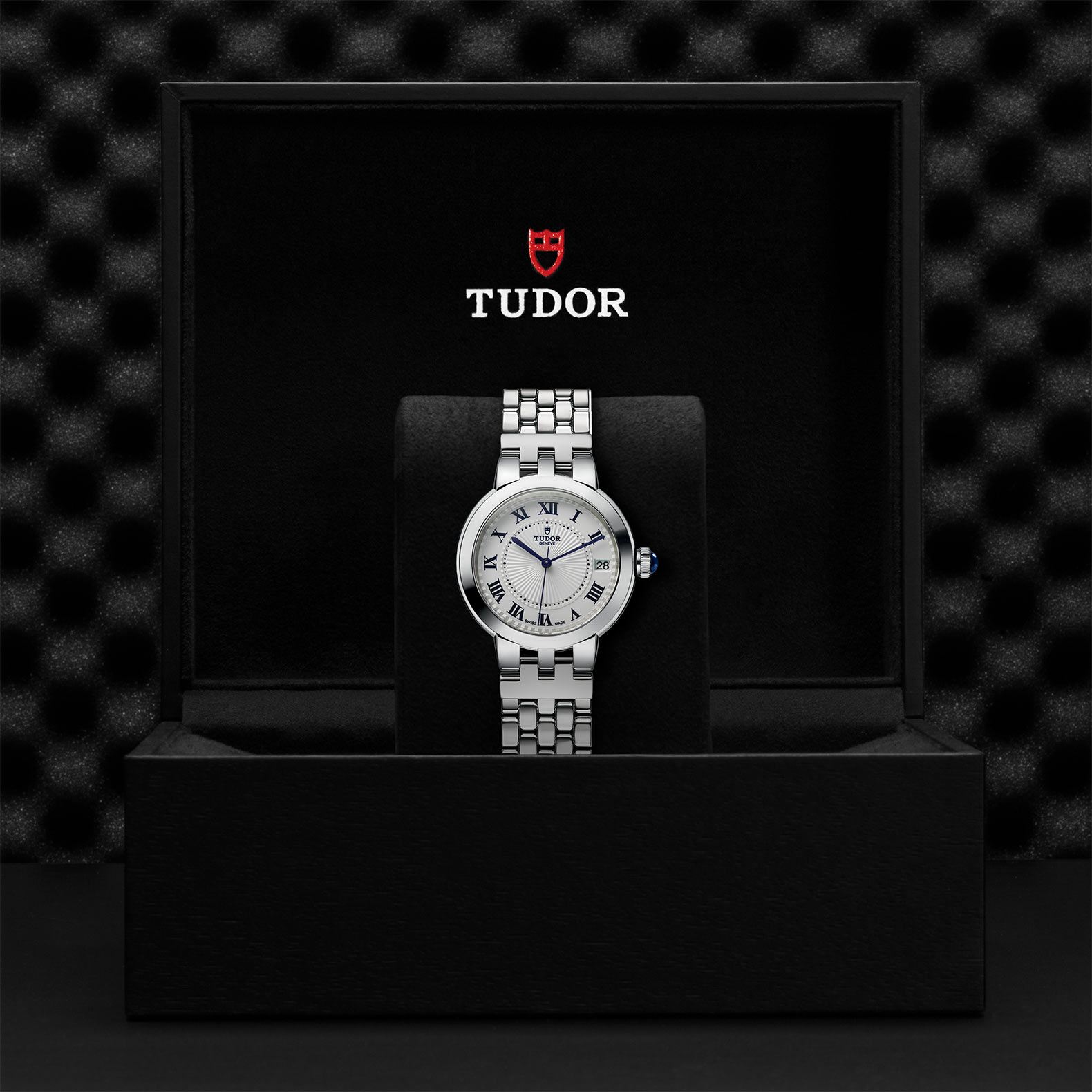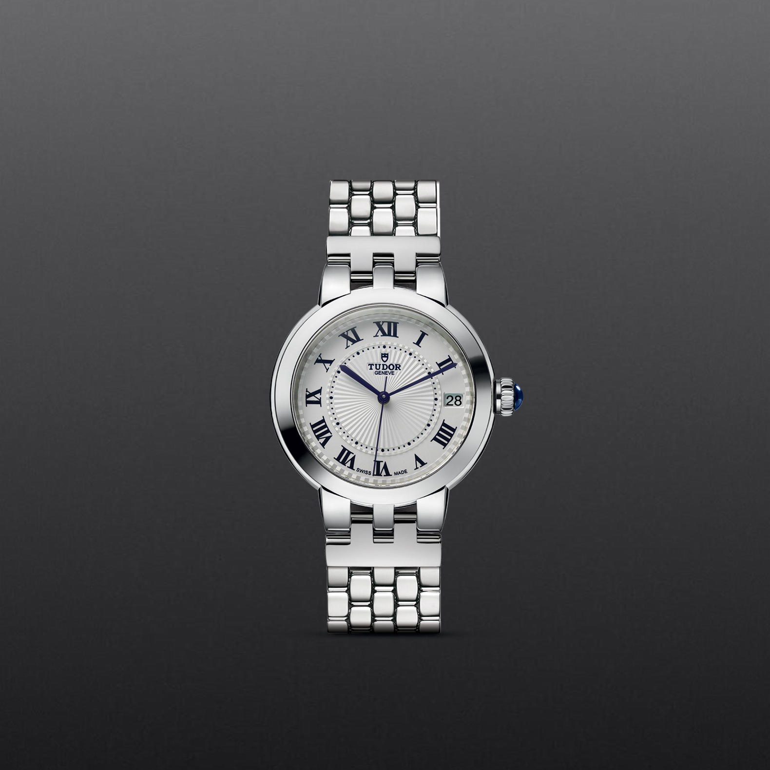 Steel screw-down winding crown, with transparent blue spinel cabochon