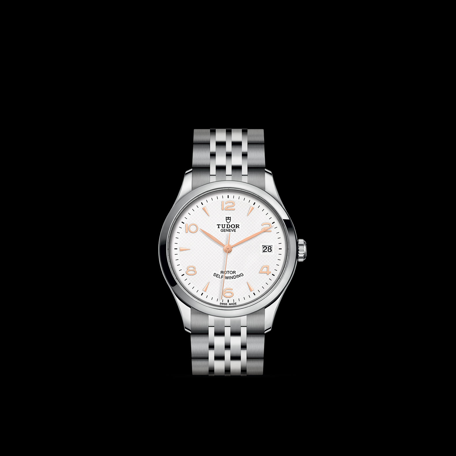 Steel bracelet, 7 rows, satin-brushed external links, polished centre links, with folding clasp and safety catch
